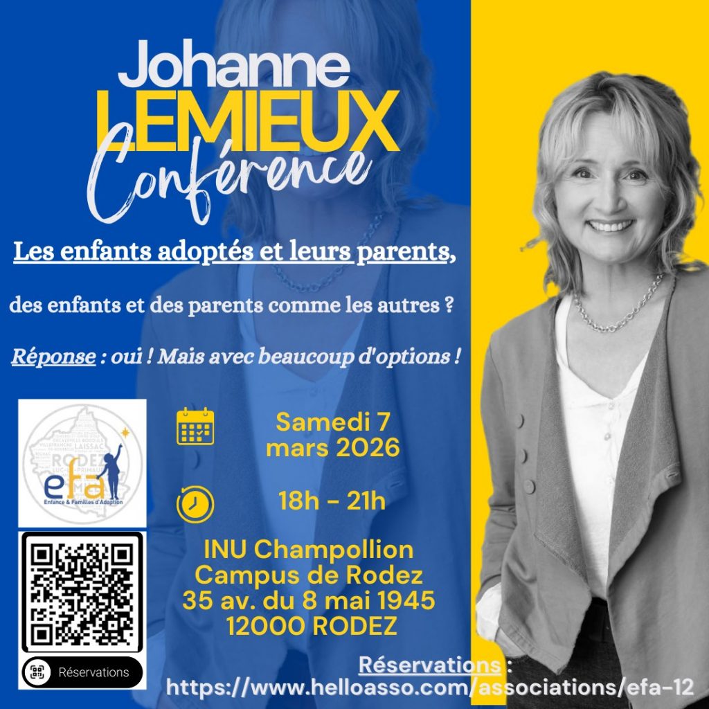 Cette conférence est organisée par Enfance et Familles d’Adoption 12, association mobilisée dans le soutien de l’adoption en Aveyron.